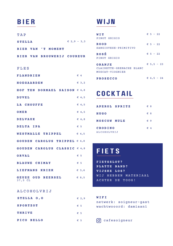 KOFFIE – BIER – LUNCH – APÉRO
